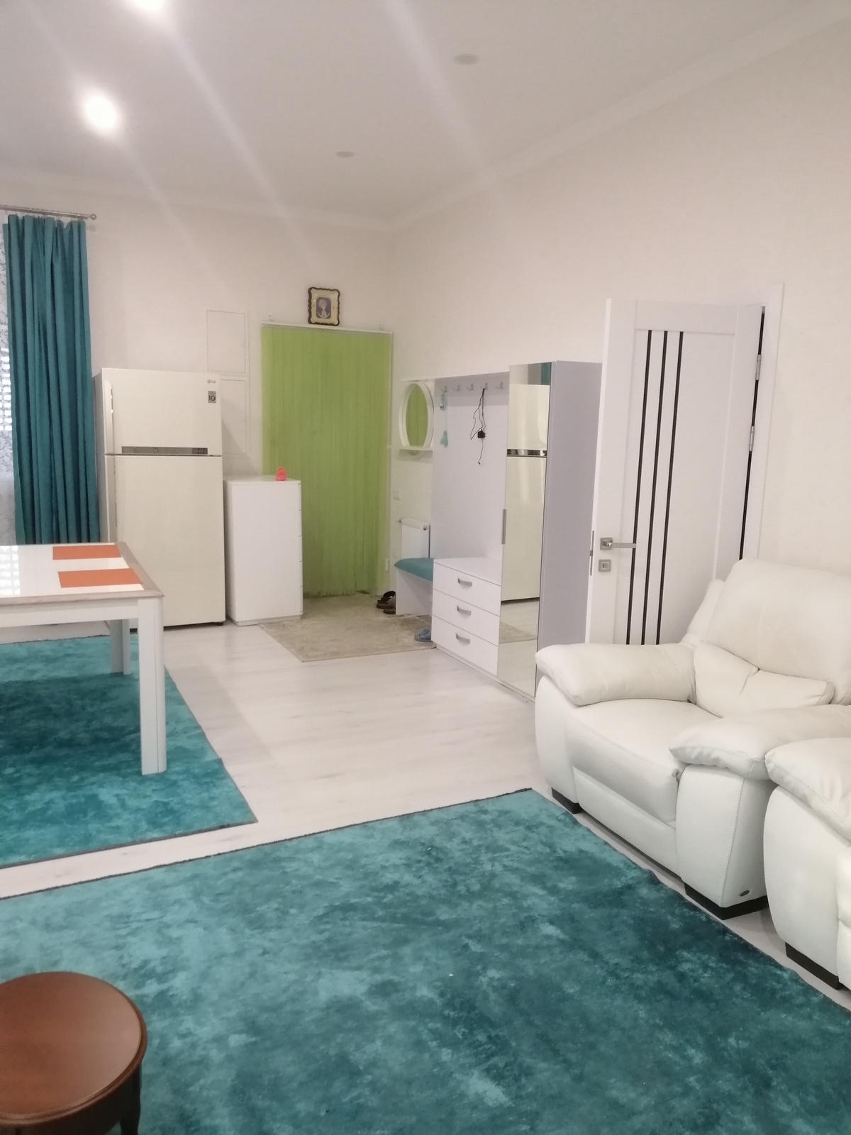 Большая кухня-гостинная , две спальни, совмещенный санузел и котельная.
