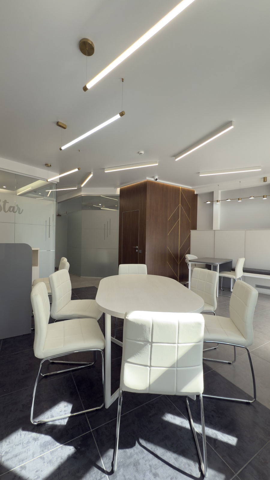 У офісі виконаний новий сучасний ремонт, приміщення повністю укомплектовано меблями і необхідною технікою.