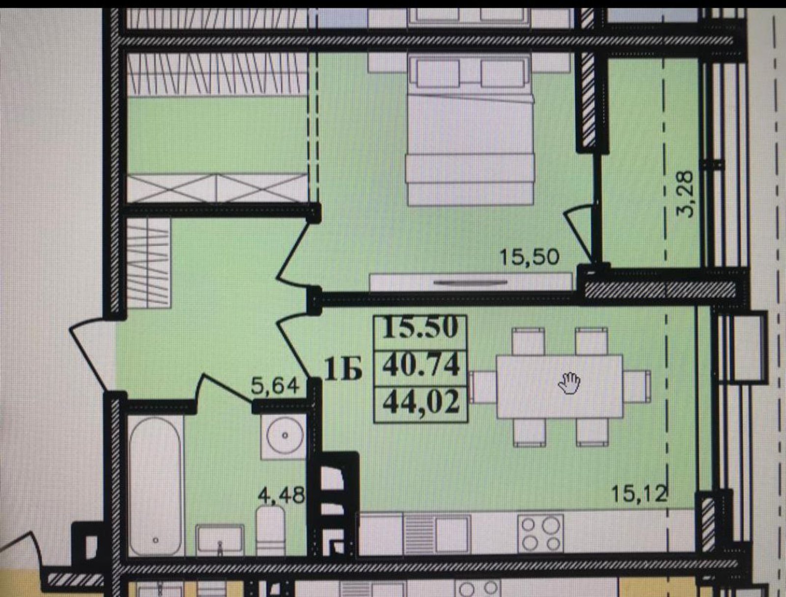 Площа: | 44,02 / 18 / 15,12 м2 |