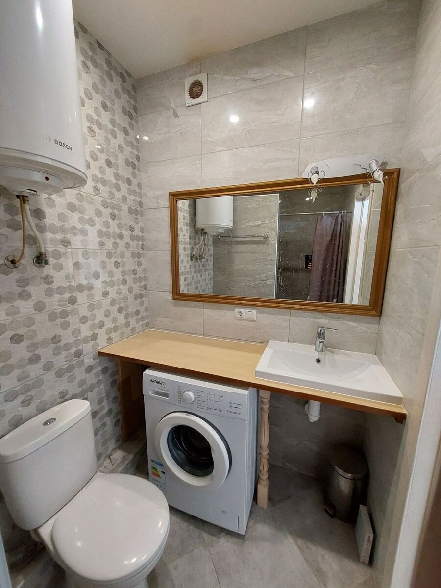 Продається видова однокімнатна квартира-студія 31 м2 на 11 поверсі 13 поверхового будинку по вулиці Ак. Вільямса Новий будинок коло моря рік введення в експлуатацію в 2019. Всі комунікації підключені, авторський ремонт окремі лічильники на холодну воду газ, електроенергію. Шикарний вид на море із всіх вікон та дверей. Деталі: Висота стелі 2.80, відкритий балкон, газова плита, електродуховка, гаряча вода від бойлера. Є готові виводи для встановлення газового котла та кондиціонеру. Гаряча вода та опалення в квартирі автономне. Підлога по всій квартирі виложена плиткою з чотирма зонами електропідігрівом. Сумісний санвузол туалет і душ, тепла підлога. Вхідні двері броньовані, вікна і двері металопластикові нові. У квартири один власник Будинок знаходиться в централізованому обслуговуванні керуючої компанії від забудовника Два Академіка Внутрішня територія закрита, двір без машин, дитячий майданчик Цілодобово охорона. Парковка коло будинку. Генератор на ліфти. Поруч монастир, супермаркет, зупинки транспорту. Поряд найкращий пляж та набережна Одеси Золотий берег 16 станція Великого Фонтану. Можливий торг.