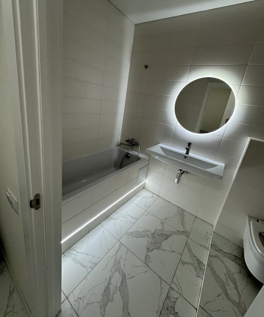 У квартирі простора прихожа з виходом на домофон, підготовлено місце під кондиціонер. Спальня обладнана двоспальним ліжком і гардеробною. По всій квартирі встановлено підсвітку з пультом керування, ванна кімната також має підсвітку та дзеркало з підсвіткою.