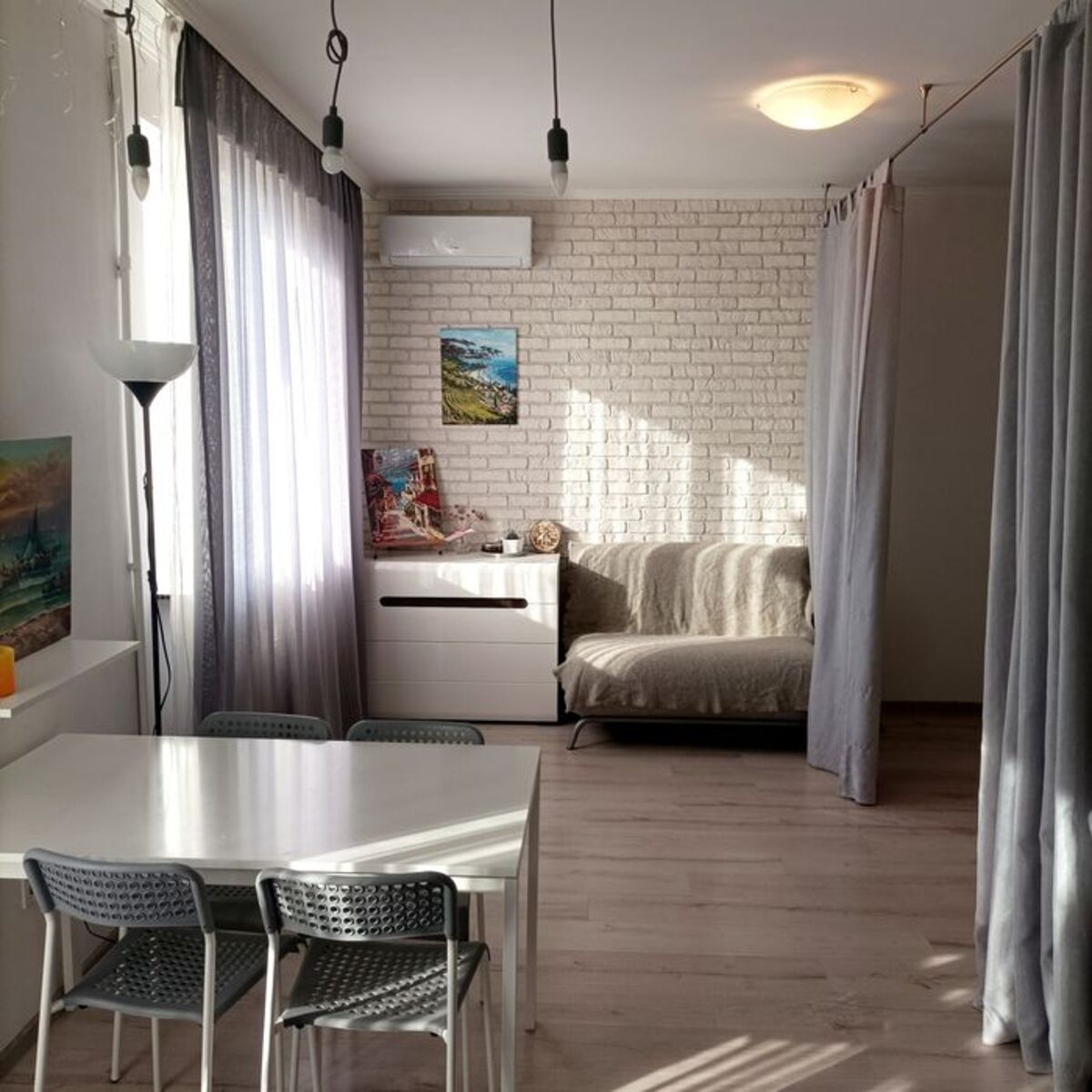 У квартирі виконаний сучасний євроремонт із використанням якісних матеріалів. Житло укомплектоване меблями, побутовою технікою та стильними аксесуарами, що дозволяє одразу заселитися й насолоджуватися комфортом. Планування студійного типу, санвузол суміжний.