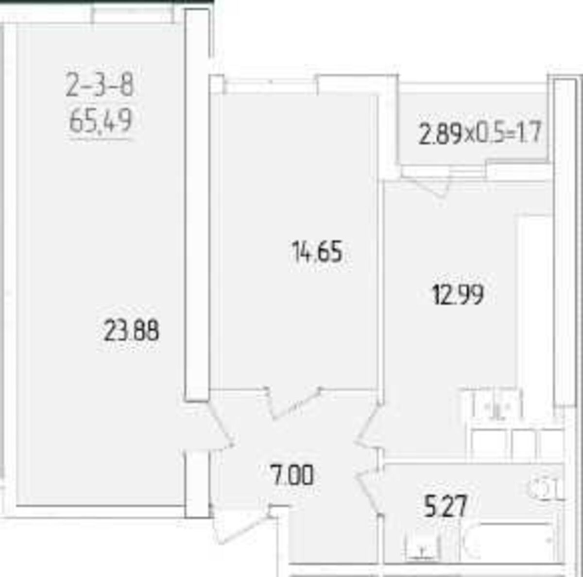 | Площа: | 65 / 38.53 / 12 м2 |