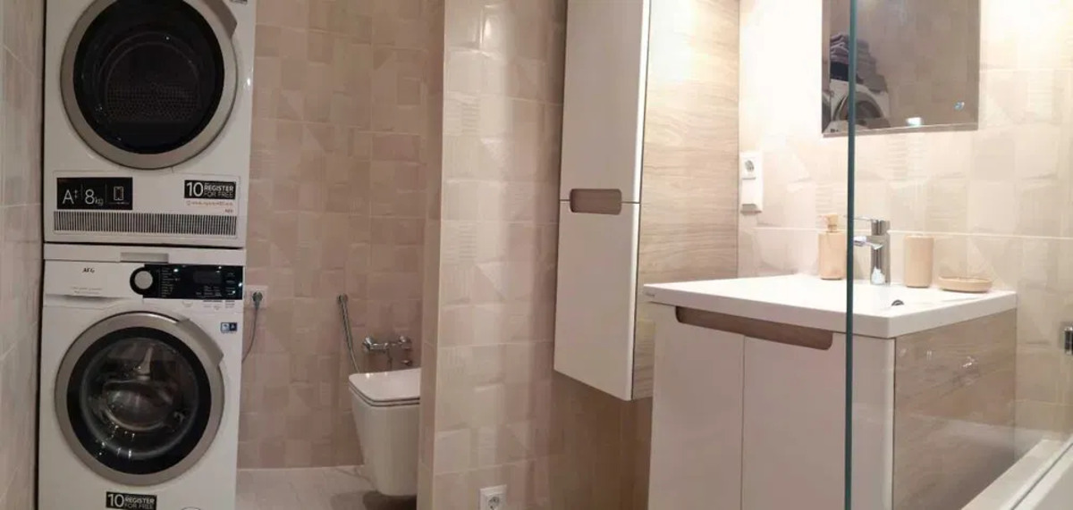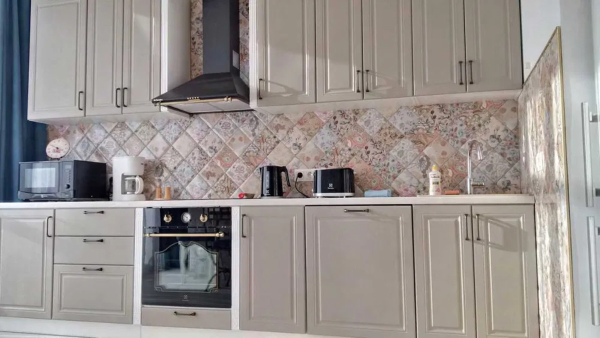 Житло оснащене всім необхідним: стильна кухня з меблями та технікою Electrolux (холодильник, витяжка, посудомийна машина, духовка, варильна поверхня, чайник, мікрохвильова піч), італійська кам'яна мийка та смеситель Grohe, іспанська плитка. У ванній кімнаті — пральна та сушильна машина Electrolux, ванна, умивальник, меблі Ravak, іспанський унітаз з інсталяцією Grohe, облицювання іспанською плиткою. Гостинна оснащена розкладним шкіряним диваном, а спальня — великою дерев’яною ліжком з комфортним матрацом і тумбочками. Потолки декоровані дерев’яною вагонкою та балками, а стіни оздоблені італійськими шпалерами. Простора гардеробна додає функціональності.