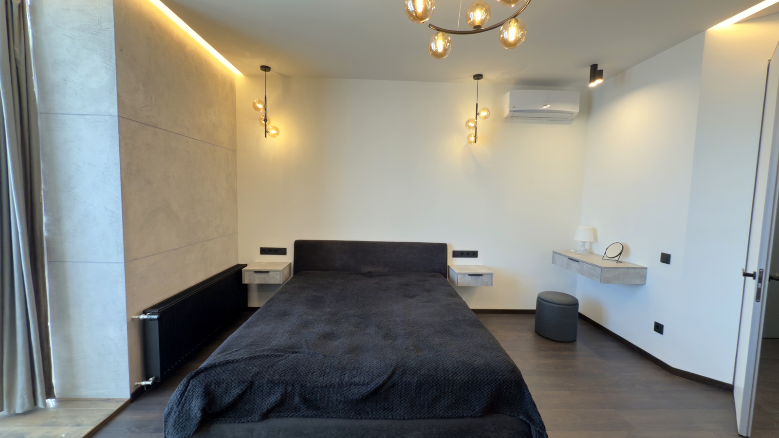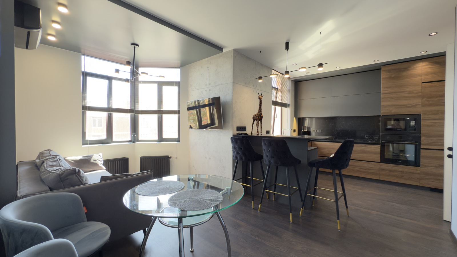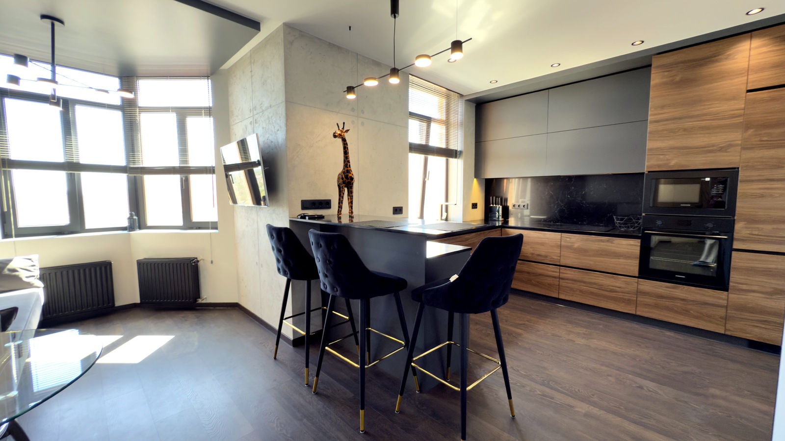 У квартирі виконано якісний ремонт за дизайн проектом, повна комплектація меблями та технікою. Всі меблі виготовлялися на замовлення, використовувалися якісні матеріали та сучасні технології в ремонті. Два кондиціонера. Повноцінна п-подібна кухня, виконана у повній комплектації з фурнітурою Blum та з усією необхідною вбудованою технікою. Вся робоча поверхня та кухонний фартух виконані з чорного кварцу. У ванній кімнаті та на лоджиї встановлена система «тепла підлога». Простора гардеробна кімната з дзеркалом на все дверне полотно, сейфом меблевим, сейфом для зберігання зброї, пральною та сушильною машинами.