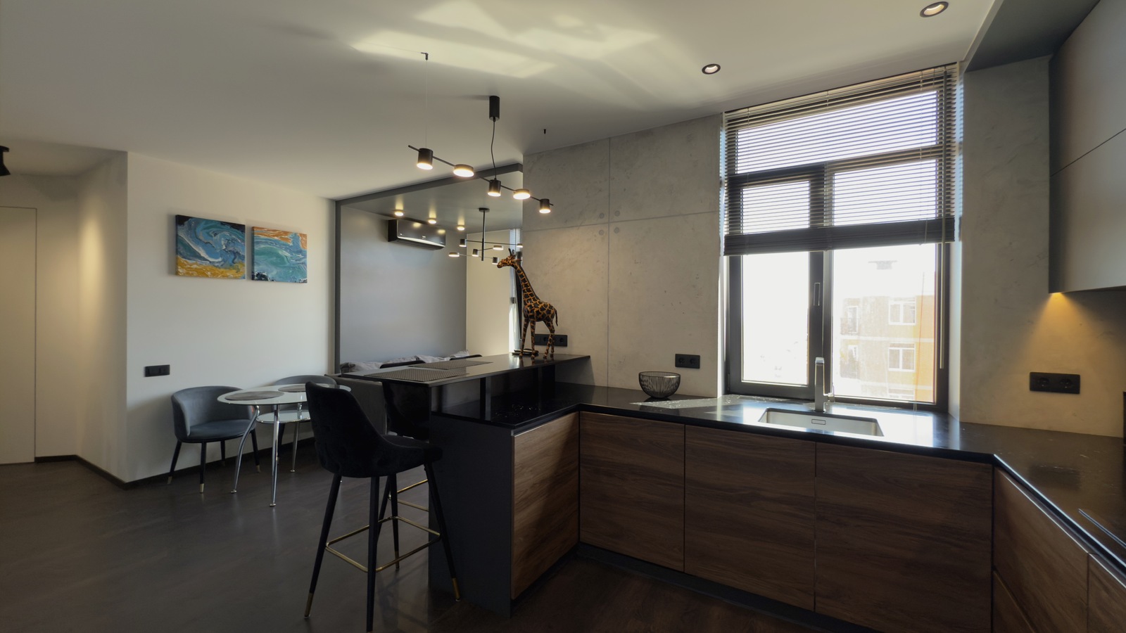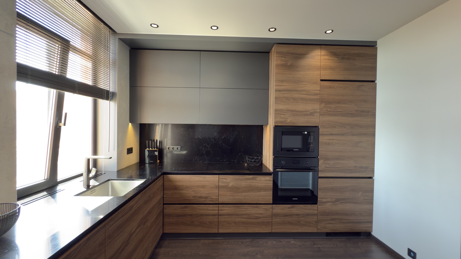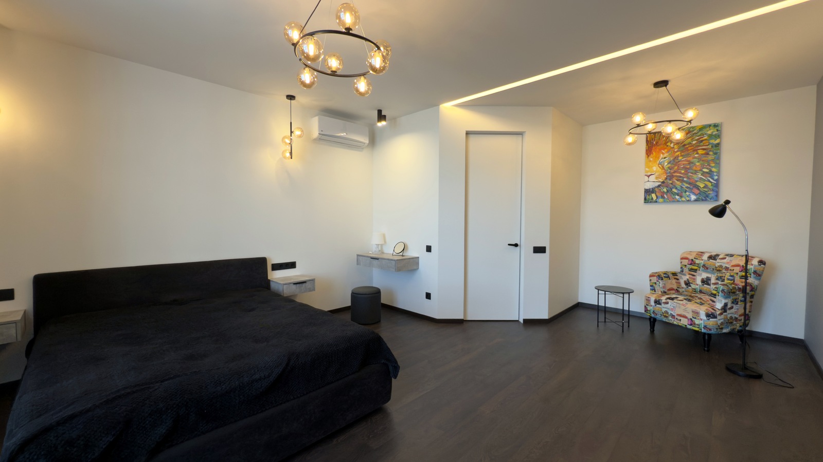 У квартирі виконано якісний ремонт за дизайн проектом, повна комплектація меблями та технікою. Всі меблі виготовлялися на замовлення, використовувалися якісні матеріали та сучасні технології в ремонті. Два кондиціонера. Повноцінна п-подібна кухня, виконана у повній комплектації з фурнітурою Blum та з усією необхідною вбудованою технікою. Вся робоча поверхня та кухонний фартух виконані з чорного кварцу. У ванній кімнаті та на лоджиї встановлена система «тепла підлога». Простора гардеробна кімната з дзеркалом на все дверне полотно, сейфом меблевим, сейфом для зберігання зброї, пральною та сушильною машинами.