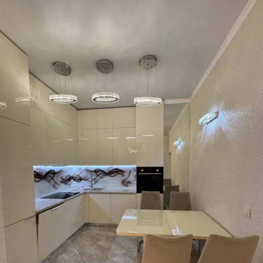 Загальна площа квартири складає 75 квадратних метрів. Простора кухня вітальня, площею 20 квадратних метрів стане серцем вашого дому де зручно готувати приймати гостей. Дві окремі спальні забезпечують комфорт для кожного члена родини. У квартирі виконаний авторський ремонт з використанням якісних матеріалів.Квартира повністю мебльована і оснащена сучасною побутовою технікою залишаються посудомийна машина плита варильна панель духова шафа мікрохвильова піч пральна машина холодильник.