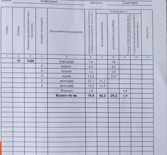Площа: 74 / 43.3 / 31 м2