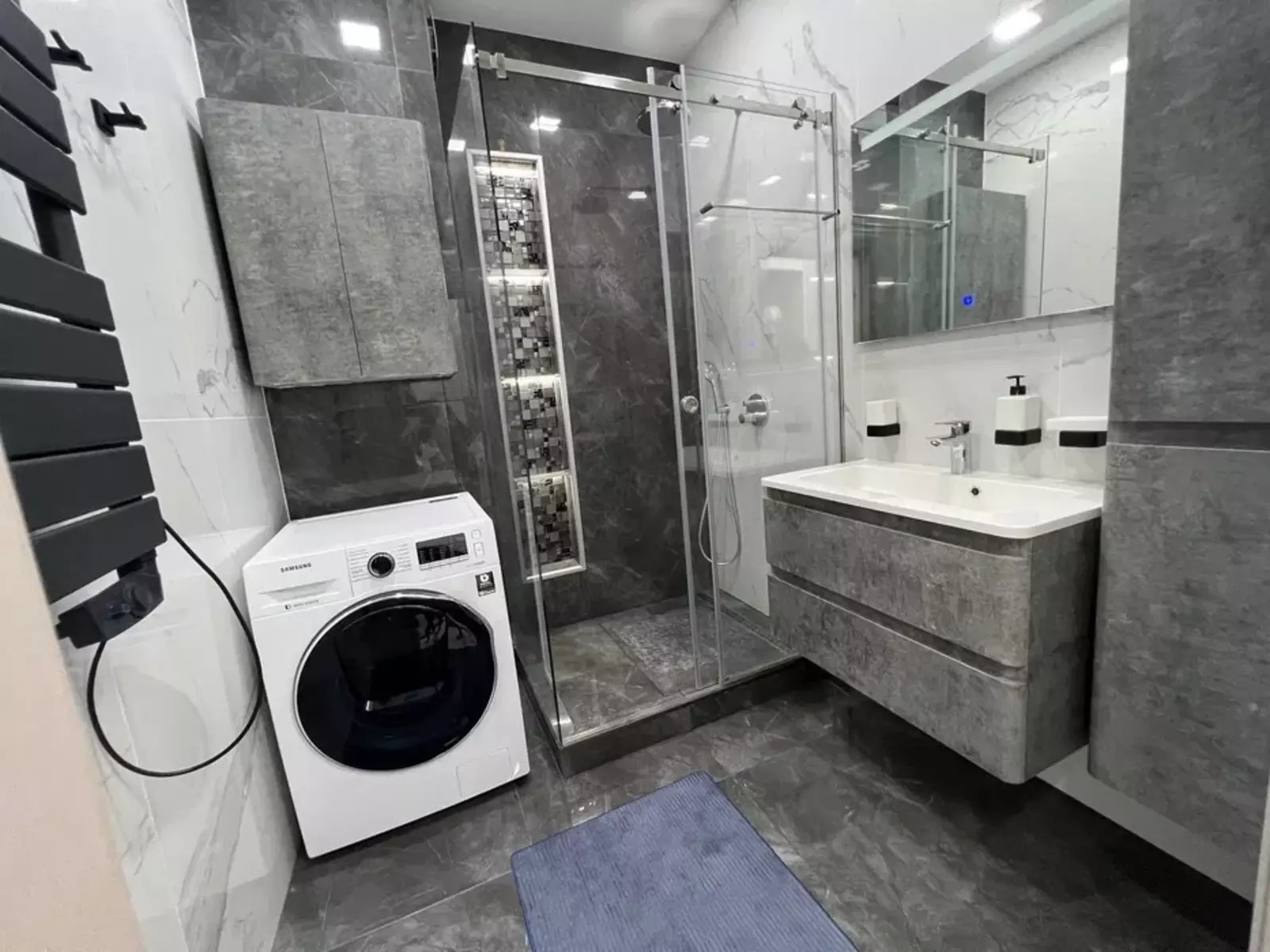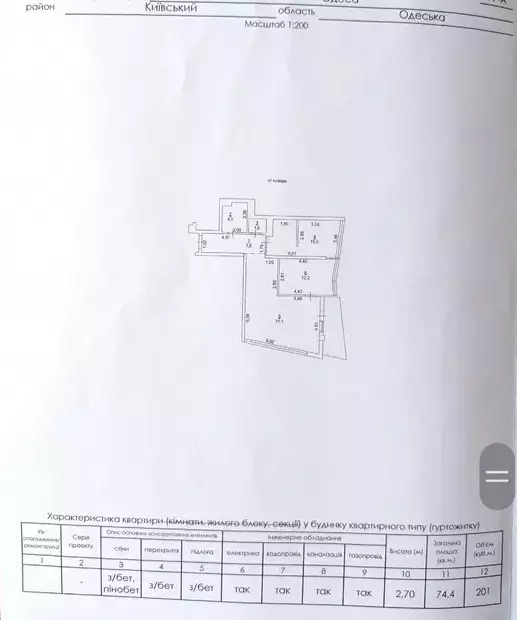 Житловий комплекс: Costa Fontana (новобудова, 2011–2020 рр).Загальна площа: 74.4 м², висота стелі — 2.7 м.Планування: хол (7.6 м²), спальня (15.5 м²), дитяча (12.2 м²), кухня-студія (31.1 м²), санвузол (1.6 м²) + ванна (4.6 м²)