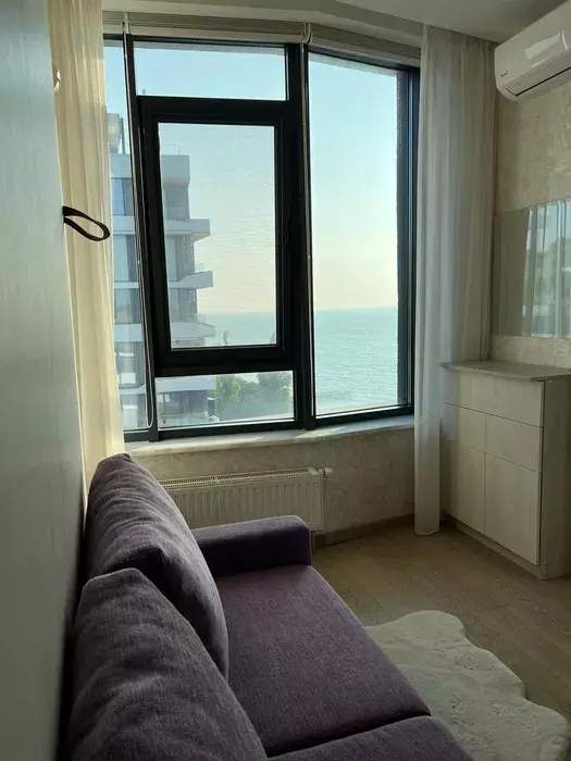 Вид на море з тераси— перша лінія!Авторський ремонт, меблі та техніка включені.Індивідуальне електроопалення, підігрів підлоги.Гардеробна, балкон, панорамні вікна