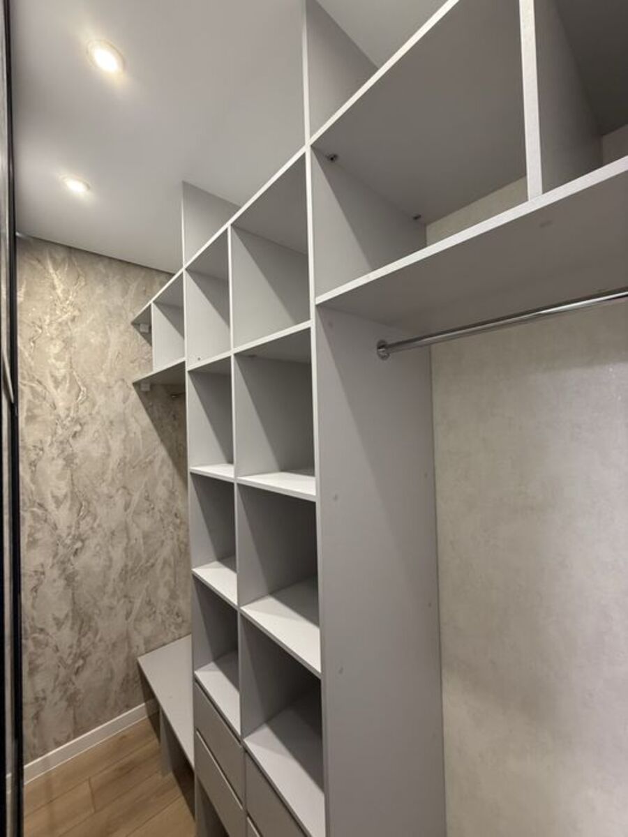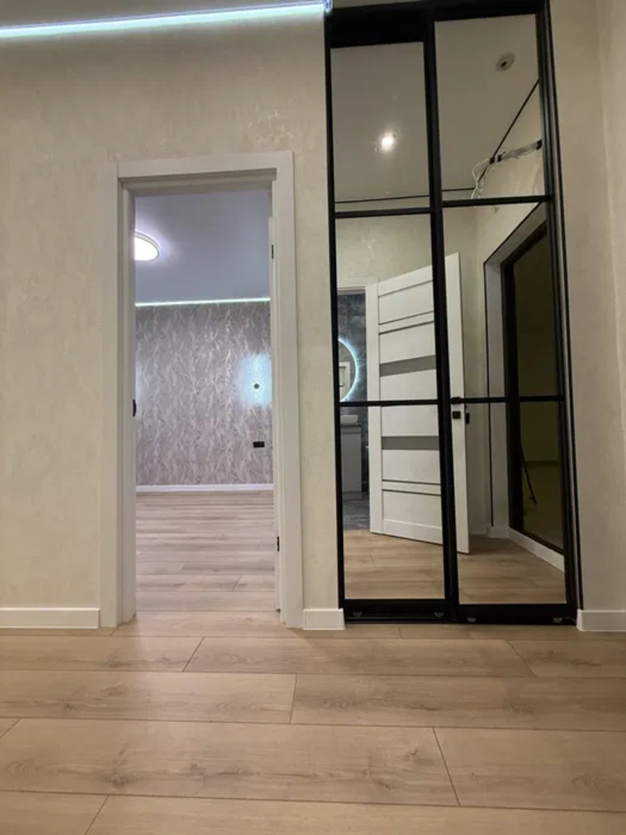 Є гардеробна + шафа в прихожій.Санвузол повністю обладнаний.Вбудована кухня з усією технікою.Мебльована.Переуступка прав включена. Житловий комплекс:“61-Жемчужина” – сучасний комплекс з охороною, підземним паркінгом, новими ліфтами