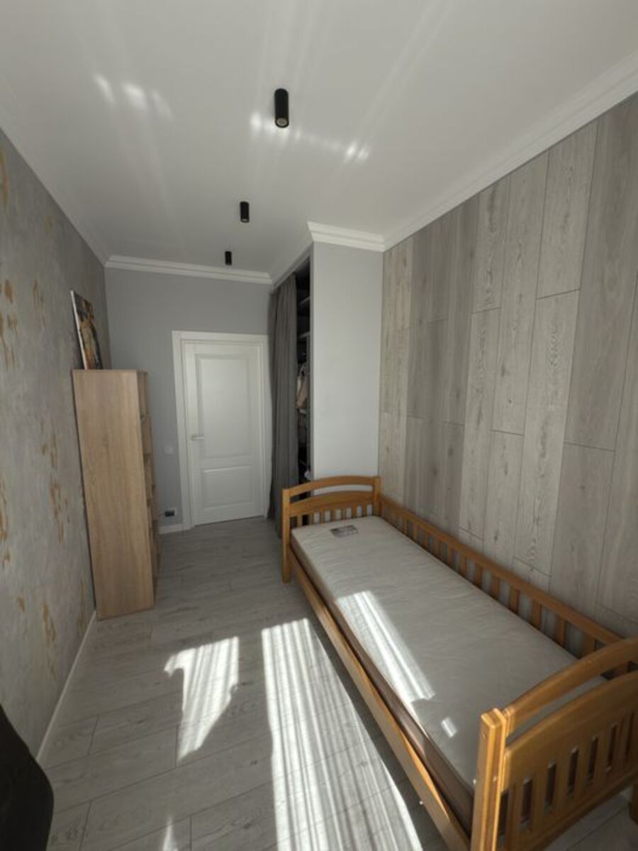 Площа — 82 м² . Сучасне планування:Три окремі кімнати.Простора кухня-вітальня.Гардеробна, кладова та безліч вбудованих шаф — максимум зручності та порядку