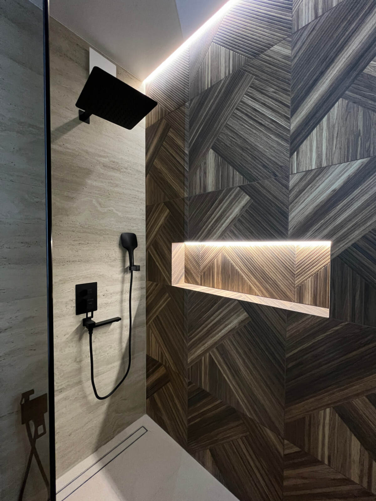Італійський керамограніт у стилі травертин — тепла фактура та преміальне відчуття простору.
