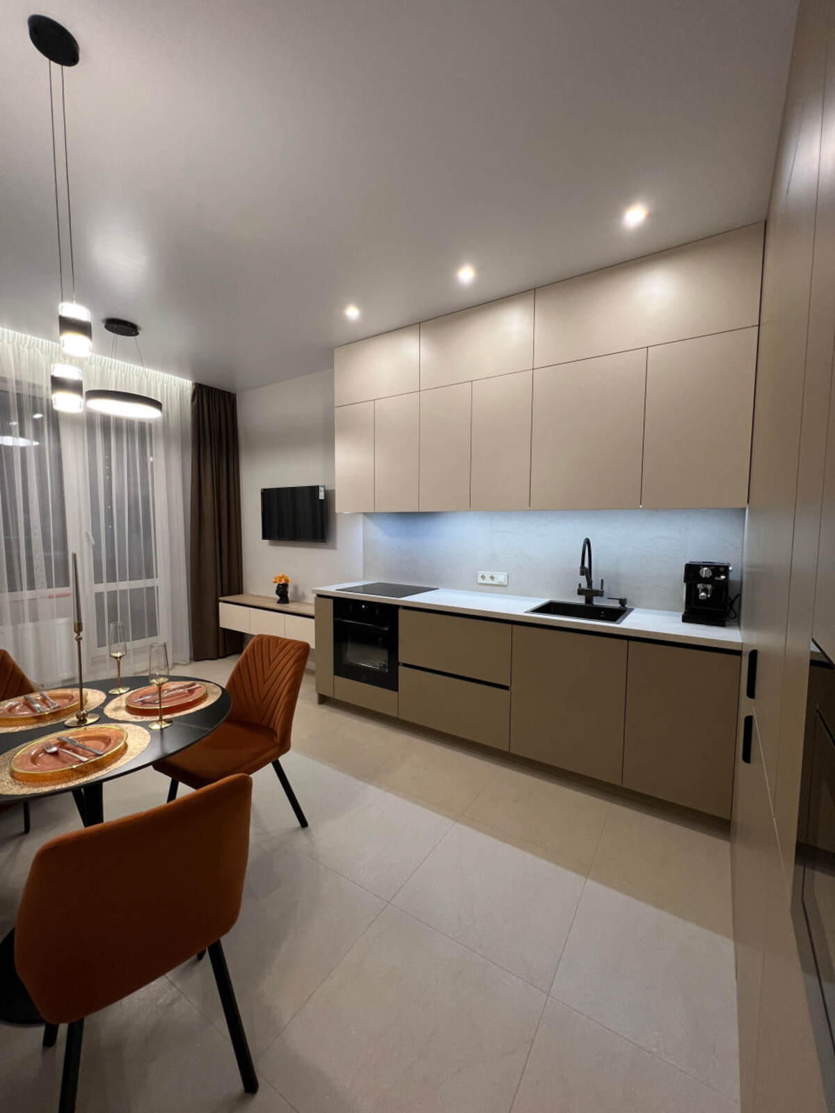 Сучасний мінімалізм, меблі й техніка преміум-класу, довершені матеріали та бездоганна увага до деталей.