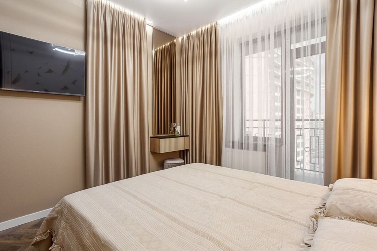 Квартира має два балкони та неперевершений панорамний вид на море.Виконано дорогий дизайнерський ремонт за авторським проектом. Квартира повністю мебльована та оснащена сучасною побутовою технікою: варильна панель, духова шафа, мікрохвильова піч, холодильник, посудомийна машина, пральна та сушильна машини, телевізор.