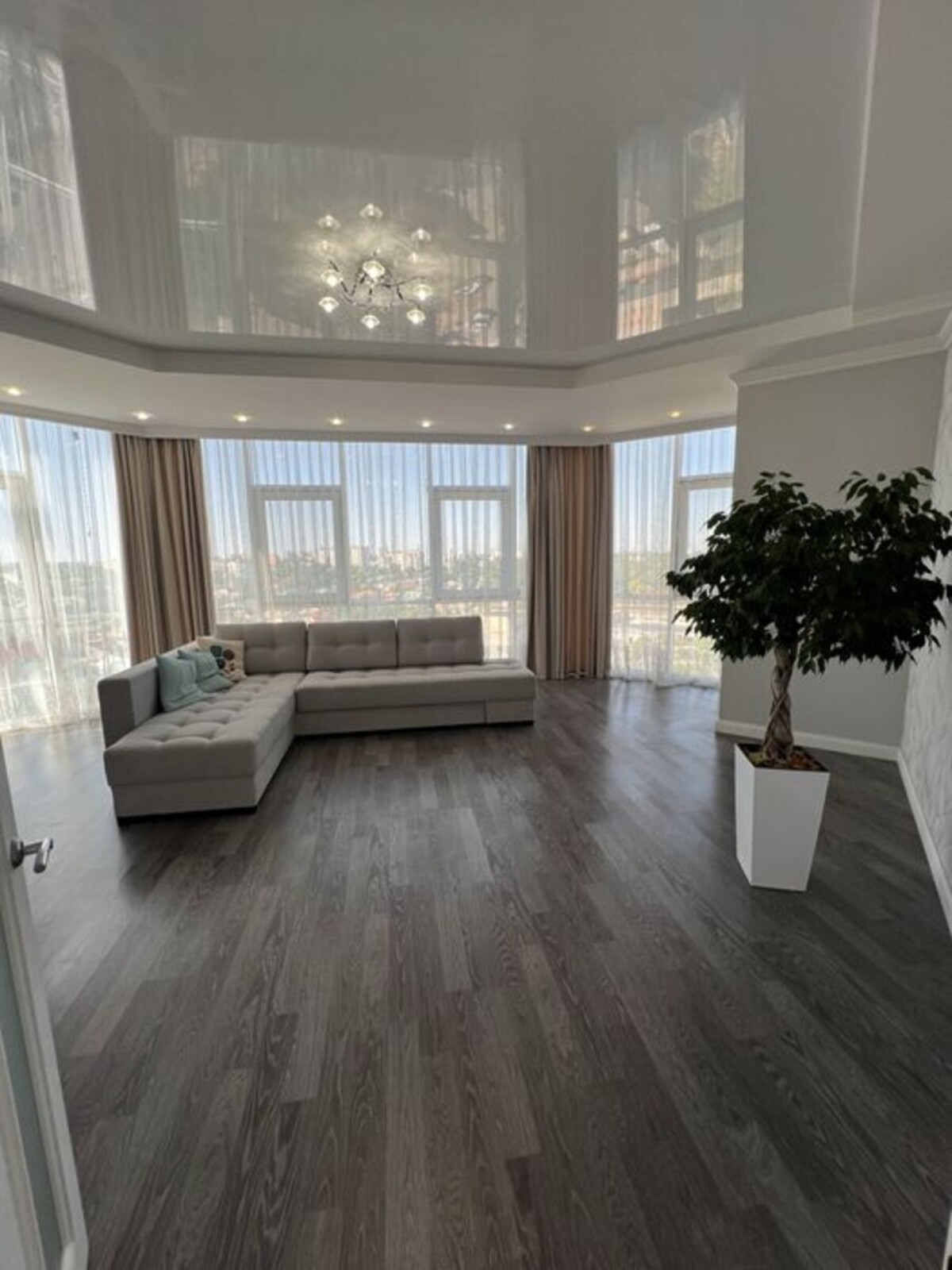 9-й поверх, площа 73 м².Вільне планування, сонячна та дуже тепла.Панорамні вікна з видом на приватний сектор