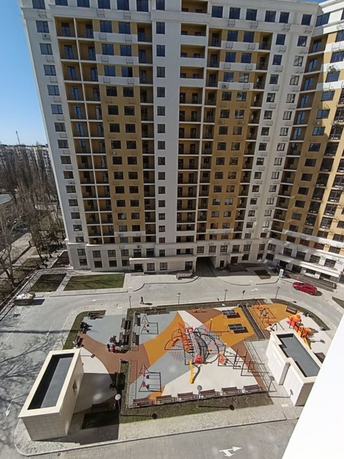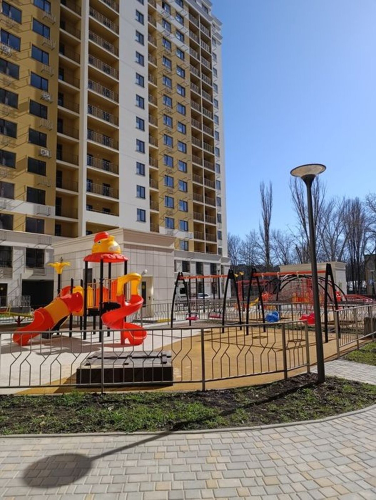 Світлий сучасний дизайн: натяжні стелі, плитка, ламінат, сучасні міжкімнатні двері.Двір без машин, з дитячим майданчиком та зонами відпочинку.